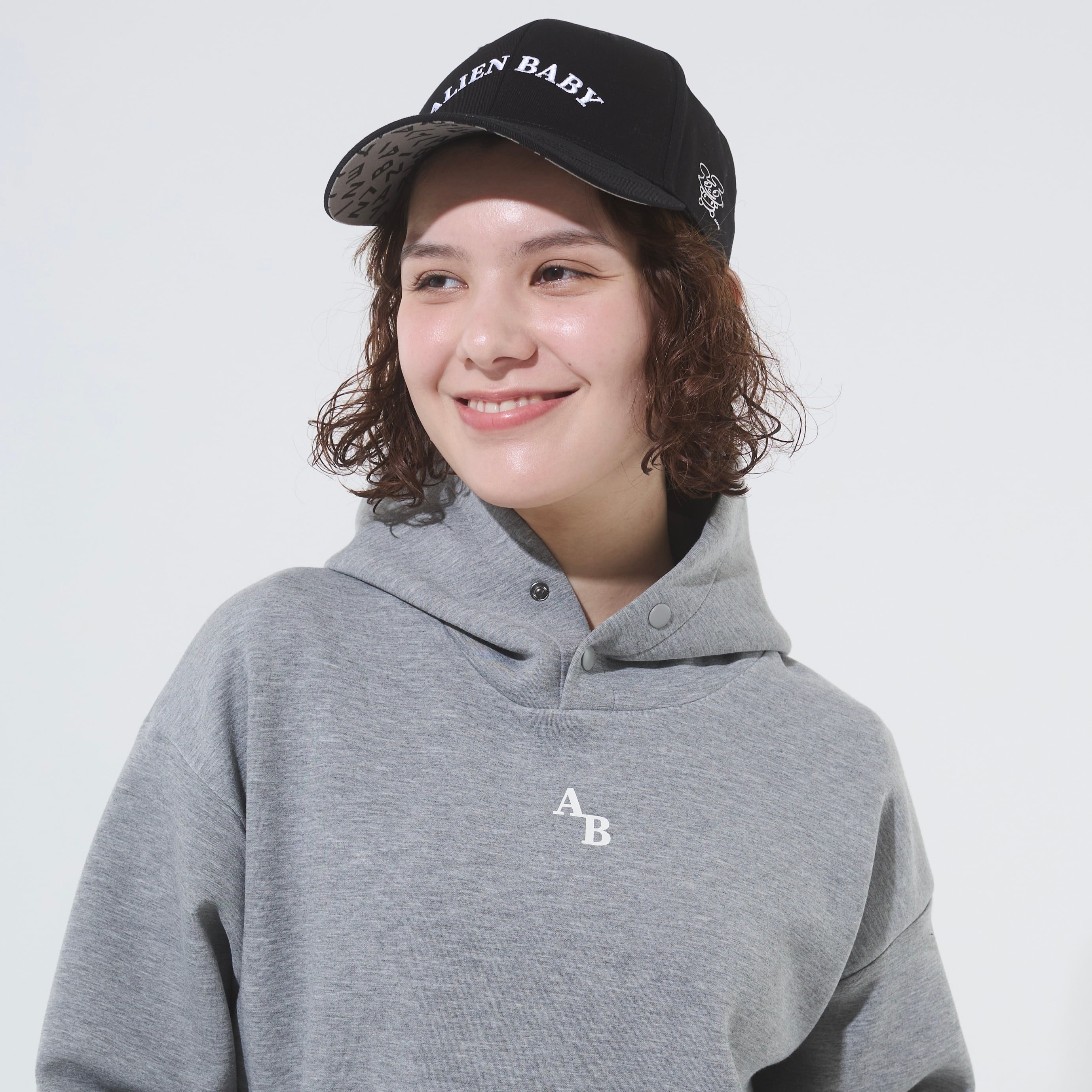シンプルなモダンカラーのキャップ。左側面にはキャラクターロゴが施されており、つば裏には遊び心をプラスしたデザインが魅力です。