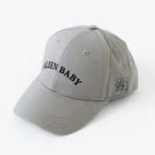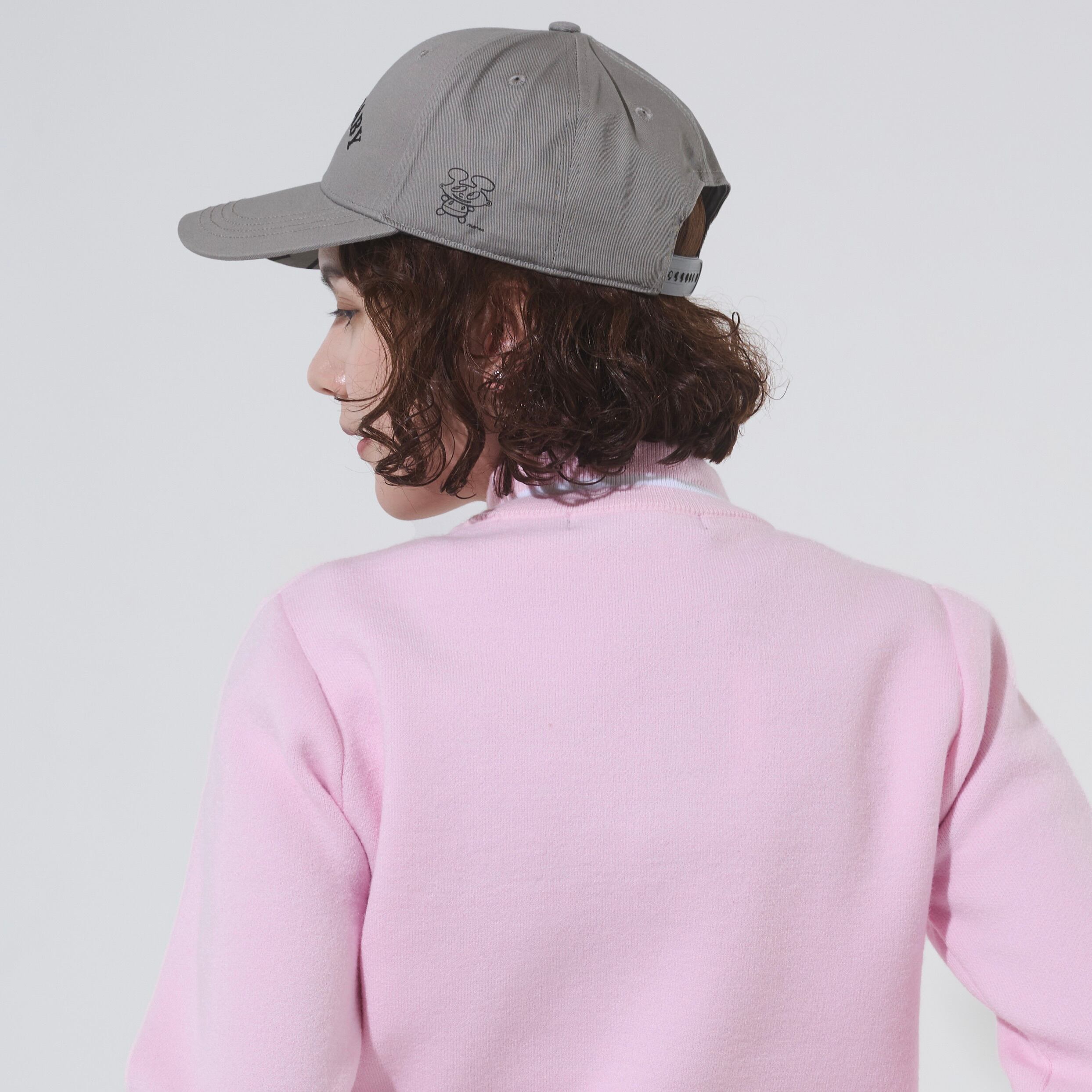 コーディネートを重たく見せないグレーカラーのキャップ。左側面にはキャラクターロゴが施されており、裏には遊び心をプラスしたデザインが魅力です。