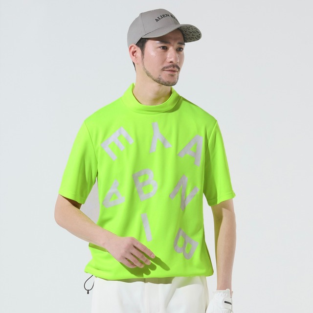 サイズ展開 M / L / XL カラー Neon Yellow 大胆なプリントが目を惹くモックネックTシャツ。 ゴルフ場でも映える鮮やかなネオンカラーです。 ドロストで裾を絞ってボトムにインしなくても着用していただけます。 ※商品のカラーは、お使いのディスプレイ環境により写真と実物では多少異なる場合がございます。 ※トップス以外のアイテムは参考イメージです。